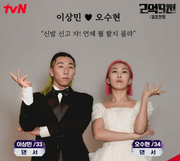 등장부터 두 분의 헤어스타일이 시선을 사로잡았습니다.  뭐 하는 분들일까 생각했었는데요~ 이상민 오수현 커플은 고등학교 때 만남이 지금까지 이어져 15년 차 커플로서 참가자들 중 최장수 커플이라고 합니다. 두 분 다 댄서로 다져진 몸매에 서로 말하지 않아도 서로의 호흡을 맞추기에는 어느 다른 팀보다 우수한 장점을 지니고 있는 듯합니다.